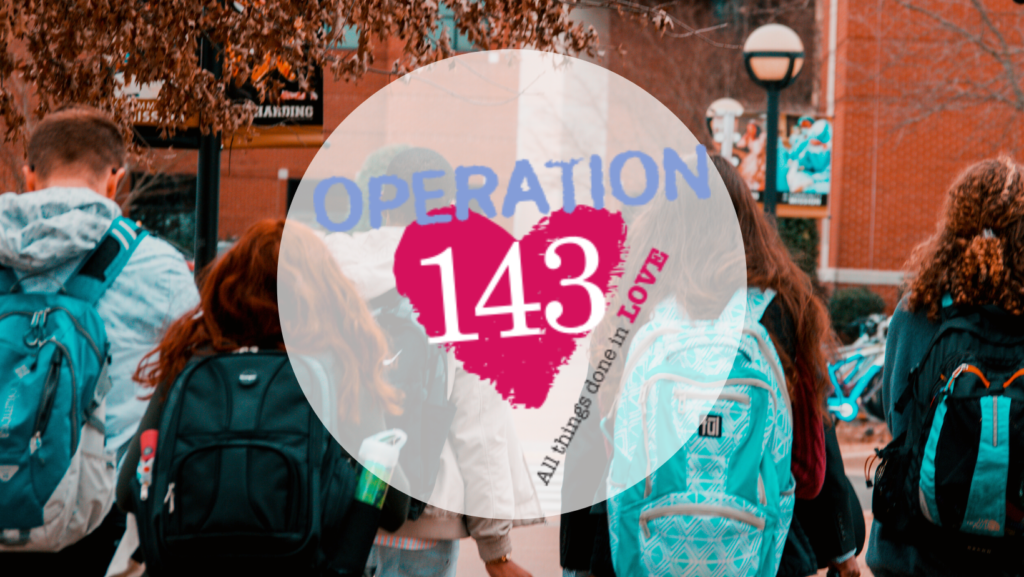 Just as the 10 year anniversary of this ministry came up, so did the opportunity to refocus, and plan for the future (also known as a stressful time when we had to go through a name change) so we landed on Operation143. If you ever passed notes in class, you might remember seeing the “secret code” of 143 (I LOVE YOU) on a piece of notebook paper. While we weren’t thrilled to be going through this transition, we felt that Operation143 captures our motto and inspirational verse: